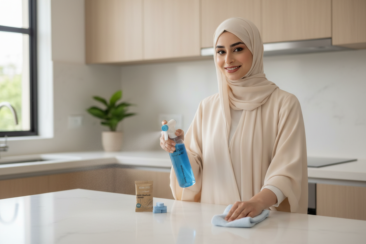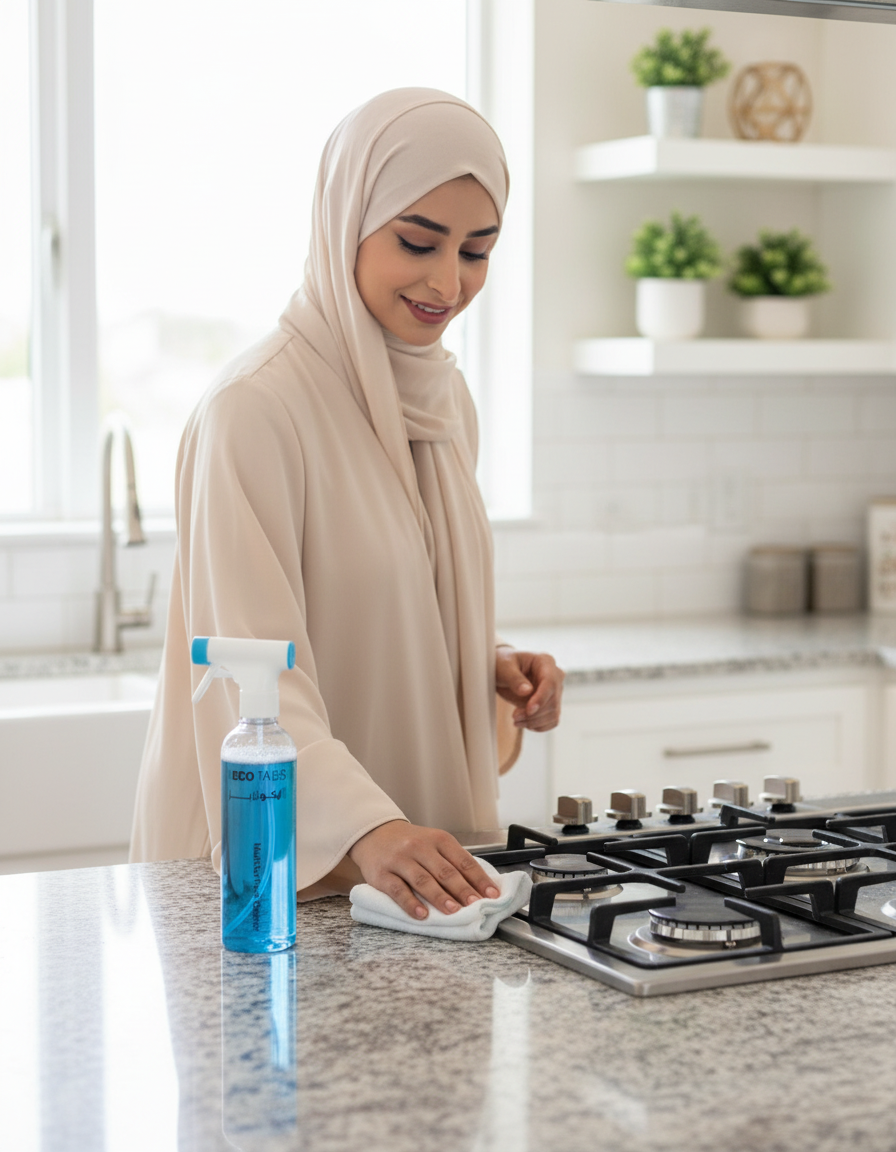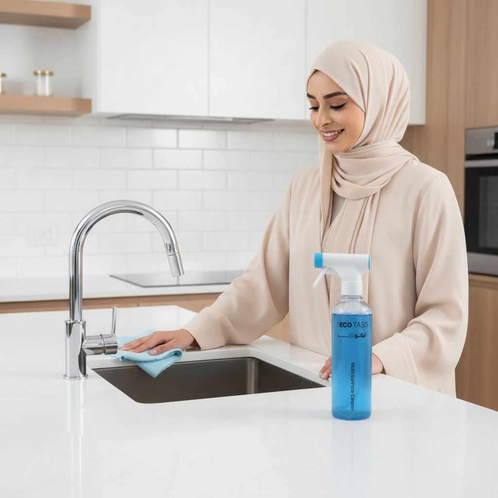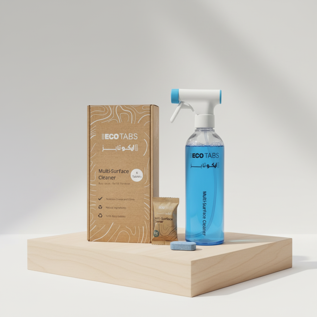 تُعد ECO TABS نظام تنظيف مستدام للأسطح المتعددة يساعدك على تقليل النفايات البلاستيكية مع الحفاظ على نظافة منزلك. بدلاً من شراء عبوات بلاستيكية جديدة في كل مرة، تسمح لك ECO TABS بإعادة تعبئة الزجاجة بشكل دائم باستخدام أقراص تنظيف صغيرة وقابلة للذوبان.