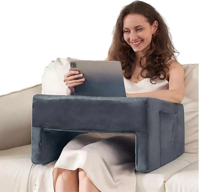 Plush, supportive reading pillow with a built-in soft lap desk for relaxed work and gaming. This memory foam pillow doubles as a lap desk and lap table so you can read, play, or use your laptop comfortably.