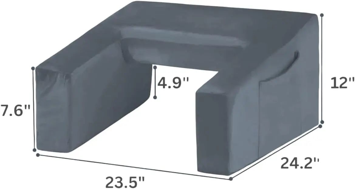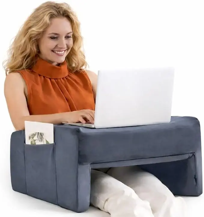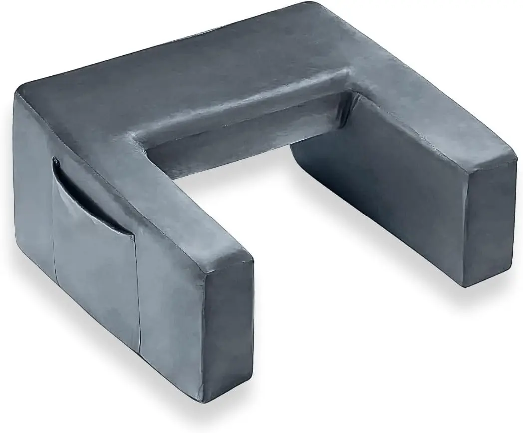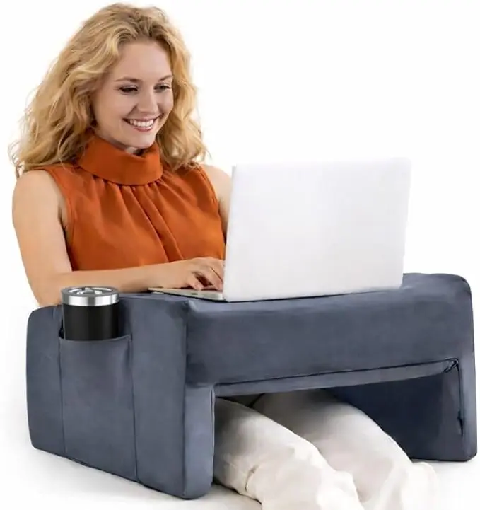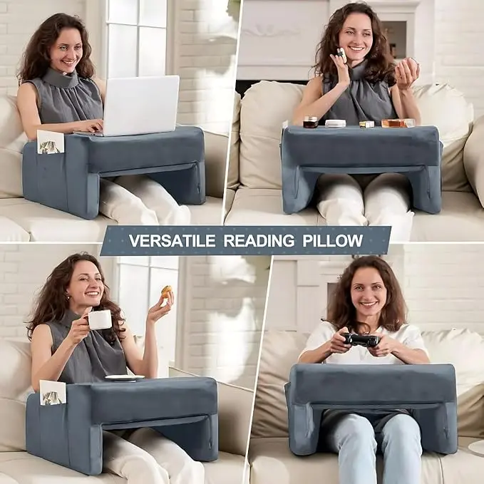 Experience ultimate comfort and versatility with the PLUSH Reading Pillow, designed as a soft lap desk for your laptop, gaming, or reading sessions. This oversized grey pillow features integrated armrests and a convenient cup holder pocket, ensuring a relaxed posture whether you're in bed, on the couch, or in the car. It's the perfect solution for anyone seeking a comfortable and functional workstation or reading companion.