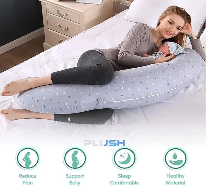 وسادة PLUSH مزدوجة الاستخدام للحمل والرضاعة مع غطاء قطني 100% قابل للغسل - دعم الأمومة والرضاعة الطبيعية